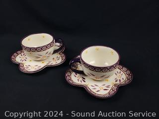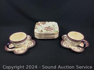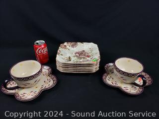Lot #0175: 2 Temp-tations Old World Cups & Saucers & 6 222 Fifth Snack Plates