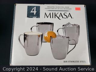 Lot #0172: 4pk Mikasa Stainless Steel Insulated Double Wall 20oz Mugs