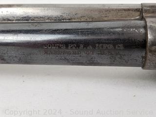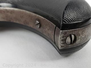 Made in Hartford CT USA. Last patent date Jan. 19, 1875. Serial 71674. Appears to be in firing condition, some scuffs, minor rust spots. Overall good condition given its age. 3.75" barrel, 8.75" long overall.