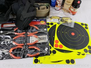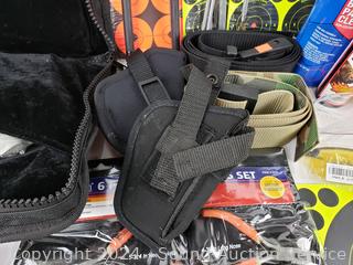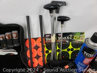 Deluxe cleaning kit, leaner & lubricant, pistol holsters adhesive targets, belts, eye protection. Refer to photos for more details.