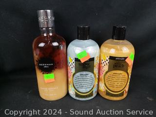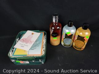 16oz Philosophy Snow Angel & White Peach Shampoo/Shower Gel, 17oz Beekman Honeyed Grapefruit Body Wash, Pink Peony Perfume (factory sealed).