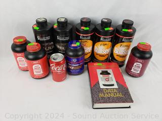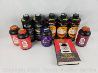 Lot #0072: Assorted Pistol/Rifle Reloading Smokeless Powder & Hodgdon Data Manual