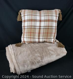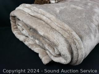 Lot #0212: Brown Plush Queen 88" x 90" Blanket w/18" Tasseled Accent Pillow