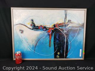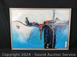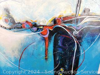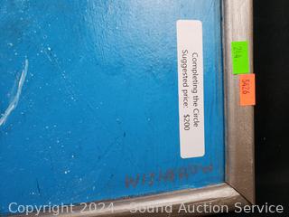 Some art information on the back. Signed by artist, 23" x 32". Dale Witherow is a local artist with several awards and grants. His art has been exhibited on the east coast mid-Atlantic region Texas, New Mexico, Mexico, and more recently in up to 14 West Coast Galleries. His Works display his love for color, design & hidden symbolism. "Painting for me is an exploration of the work, self, color design memory, emotion and the light and dark of all things" - Dale Witherow.