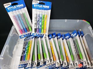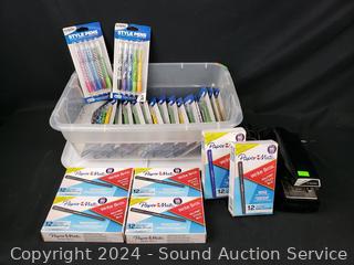 16ct 5pk Scriptie Style Pens, 6ct 12pk PaperMate Blue & Black pens, Swingline 67 Electric stapler.