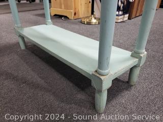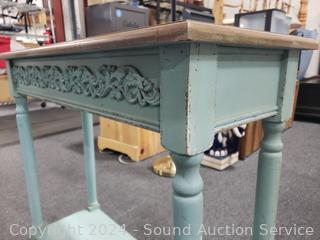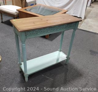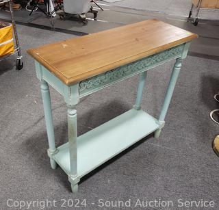 Lot #0027: Turquoise & Contrasting Wood Top Hall Table