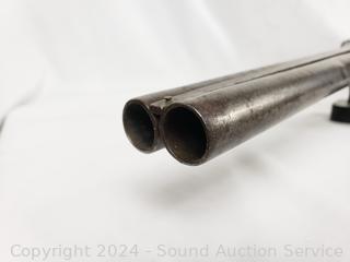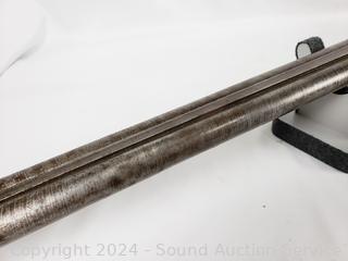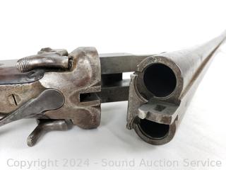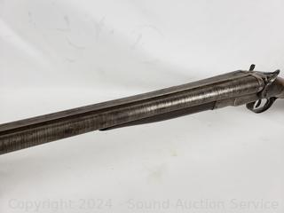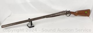 Barrel just opens and comes apart, appears to be in firing condition, signs of wear from age, use. Serial 132170F Barrel & 124655F Action. 32" long barrel, 49" long overall.