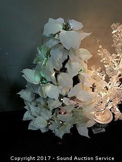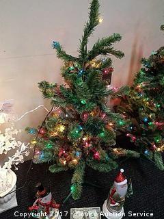 All trees come with boxes. One is a poinsettia fiber optic tree. All are approx. 36" tall. Also comes with 13" light up snowman and santa snow globe decor (Each takes 3 AA batteries).