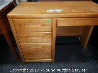 Lot #0235: 4 Drawer Solid Oak Office Desk