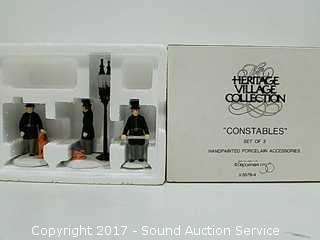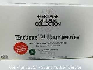 All come with original boxes. Includes: Dickens Village Series "The Christmas Carol Cottage", set of 3 constables, Sliding Down Corn Hill with Bob Cratchit, The Vicar, and On Time Delivery. All are in excellent condition.