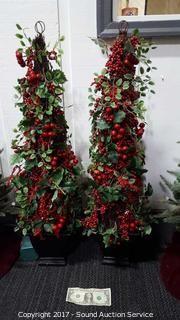 Lot #0197: Holly & Lighted Christmas Tree Decor