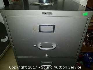 Comes with some files and 2 hanging file systems. In very good condition. Very sturdy. Made in USA. Approx. 42" tall, 18" wide and 28" deep.