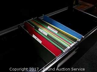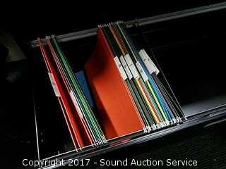 Comes with key, 4 hanging file systems and files. In very nice overall condition. Approx. 42" long, 53" tall and 19" deep.