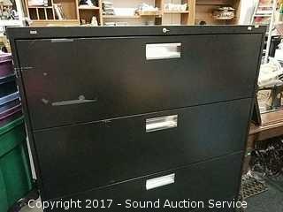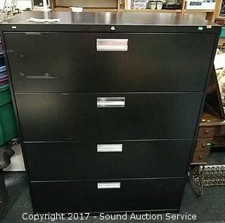 Lot #0083: Large Black Hon 4 Drawer Locking File Cabinet