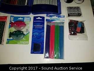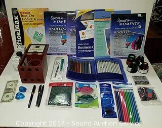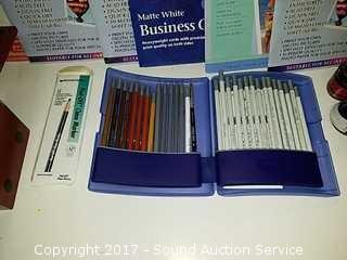 Lot #0092: Lot of Calligraphy Pens, Paint Brushes, Ink & Paper