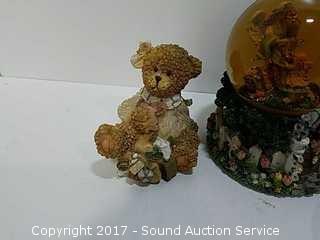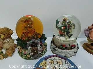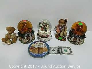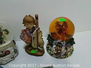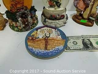 Snow globes are approx. 6" tall. Plate is 5-1/4" diameter.