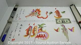 Lot #0268: Pair Original Artist Signed Asian Calligraphy Art