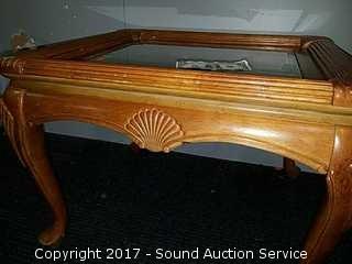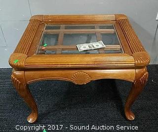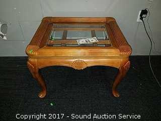 Lot #0094: Solid Wood & Beveled Glass End Table