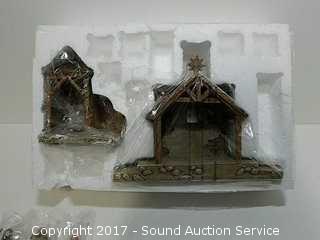 Christmas tree stand is Model XCS2, comes in original box, supports trees up to 10ft tall and 100lbs with trunk diameter as large as 5". Nativity set looks to be complete and in like new condition, comes with box. Stable measures 7" tall, 9" wide.