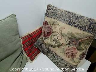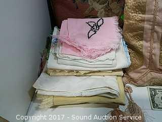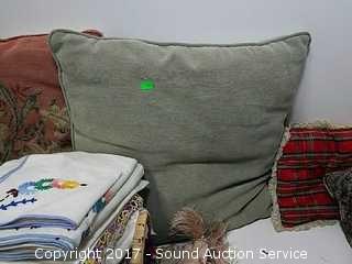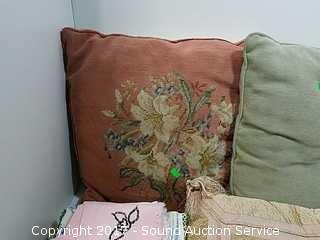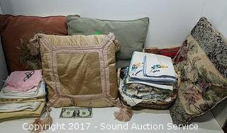 Lot #0069: Vtg. Throw Pillows & Hand Embroidered Linens