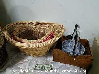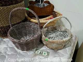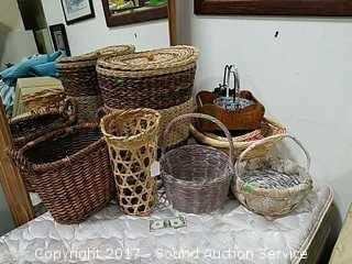 Lot #0071: Wicker Laundry Hamper & Wicker Woven Baskets