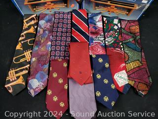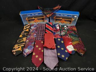 Lot #0039: 12 Ties, Kerchief & 2 Tie Valets