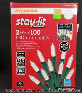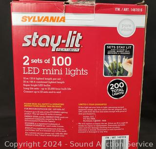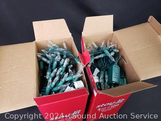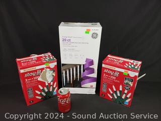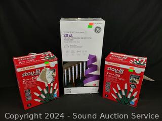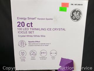 Lot #0141: (2) 2pk Stay-lit 100 LED String Lights & LED Twinkling Ice Crystals