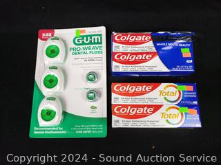 Lot #0279: 4 Colgate Advanced Whitening Toothpaste & 5 Pack of G-U-M Floss