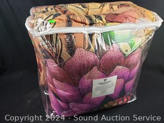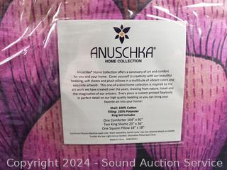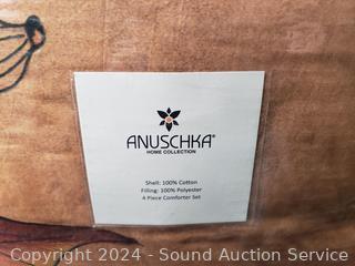 Lot #0128: 4pc Anuschka Floral King Comforter Set