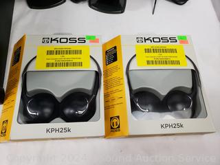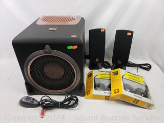 Lot #0048: Acoustic Authority 3pc Media/Computer Speaker Set & 2 Koss Headphones
