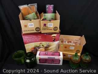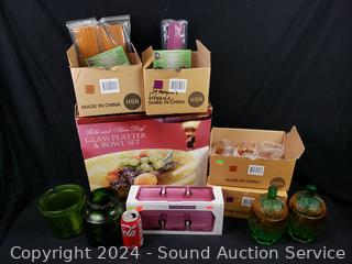 Covered dishes, divided dishes, forever fragrant incense, votives, platter & bowl set.