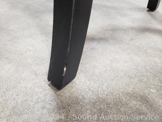 Has some shipping damage, chipping on bottom edge. 45" H x 16" x 30" to seat.