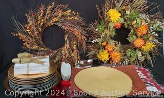 Lot #0234: Branch Wreaths, Drip Plate Chargers & Placemats