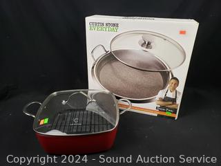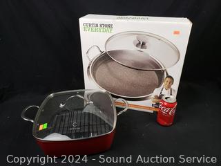 Lot #0215: Curtis Stone 14" Multipurpose Pan & 6.5qt Dutch Oven w/Rack