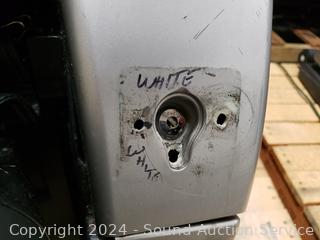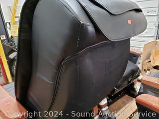 Came out of Bartell Drugs, has power otherwise untested. Various wear from use, mainly on the legs, some scuffs, scratches, worn material. Plate covering key lock box is missing, no key. Approx. 48" H x 33" W x 21" to seat.