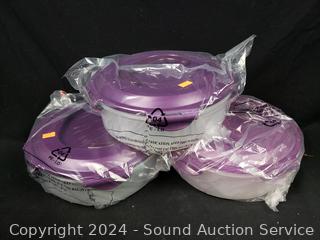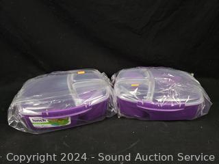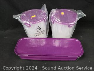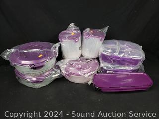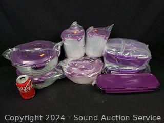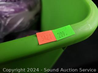 Lot #0209: Green Tote Full of Assorted Purple Lock & Lock Food Storage Containers