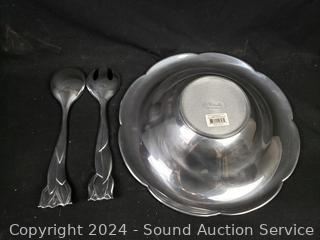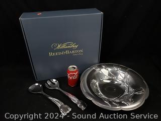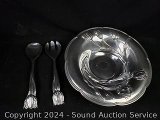 Lot #0212: Reed & Barton Garden Palace Salad Bowl & Utensils Set