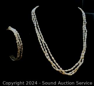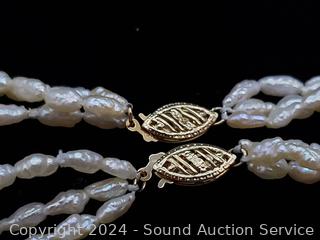 Lot #0121: Vintage Pearl 16" Necklace & 7" Bracelet w/14K Gold Clasp