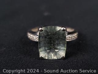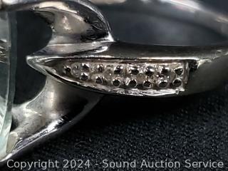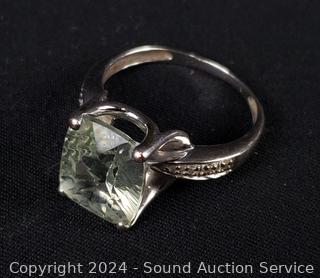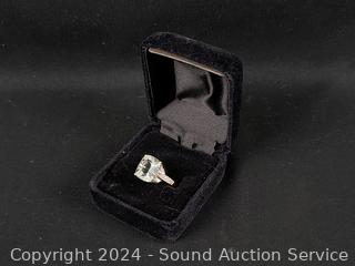 Lot #0180: 14K White Gold Ring w/Clear Stone & Diamond Setting S:8