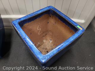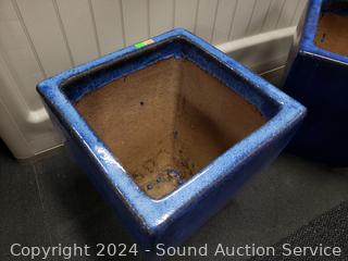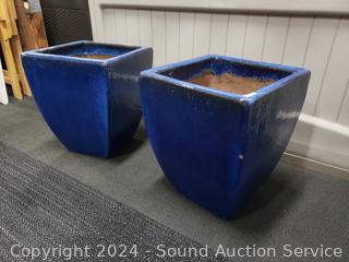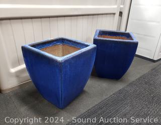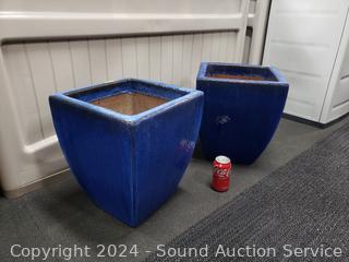 Lot #0060: 2 Blue Enameled Pottery Planter Pots