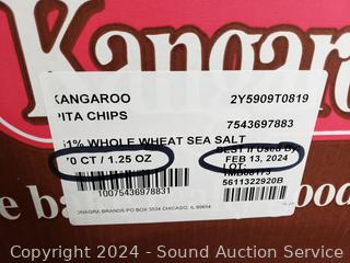 24pk 1oz Garden Veggie Zesty Ranch snacks, best by Dec. 17, 2023. 12pk 3.4oz Ritz Crackers, best by Feb. 09, 2024. 70pk 1.25oz Kangaroo Whole Wheat Sea Salt Pita Chips, best by Feb. 13, 2024. Were sealed, opened for photos.