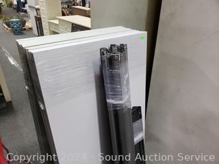Laminate shelves. 72" H x 48" x 18". Don't see any major issues.