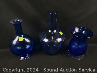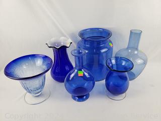Lot #0108: 6pc Cobalt Glass Vases
