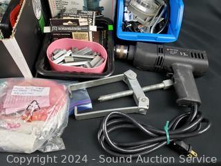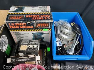 Miter box, 3/8" drill, 1/4 sheet palm sander, various hand tools. Refer to photos for more details.