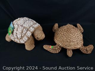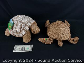 Lot #0115: Pair of Handcrafted Woven Turtle Sculptures