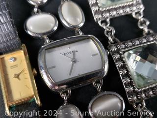 Lot #0169: Seiko & Fossil Quartz Ladies Watches & Bracelet