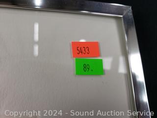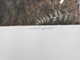 28" x 23". Framed, matted with glass. Some slight rippling near top of artwork.