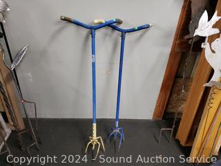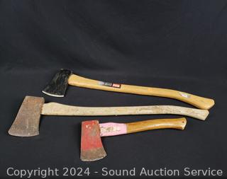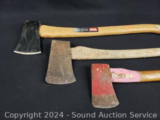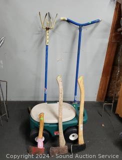 Lot #0085: Splitting Axes, Hatchet, Garden Claws, Storage Bench