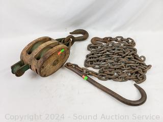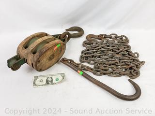 Lot #0096: 10ft Hook Chain & 8" Block Pulley
