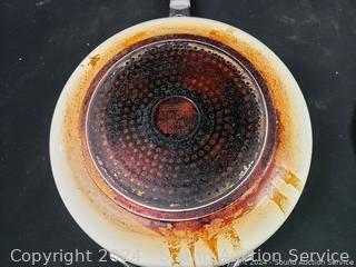 Pan has various wear from use, one potholder has s small hole in seam, don't see any other issues.